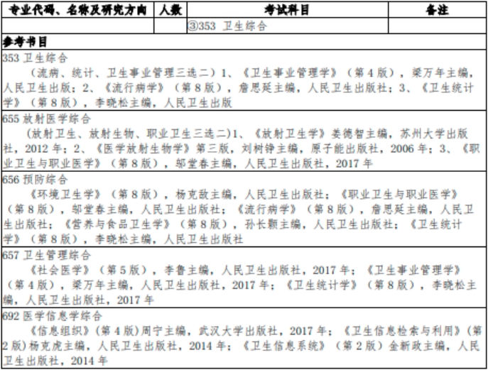 1.2025年各专业招收推免生情况:流行病与卫生统计学6人,劳动卫生与环境卫生学1人,营养与食品卫生学1人,社会医学与卫生事业管理2人,公共卫生17人。