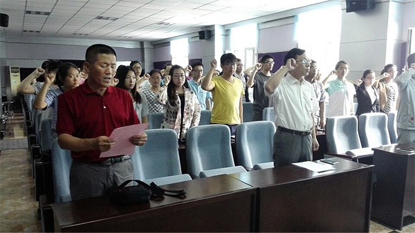 为了弘扬和传承中国共产党的精神,为党组织增添新鲜血液,2015年7月1日公司举行了庆祝建党94周年暨预备党员入党仪式。公共卫生公司党委书记钟绍峰、副书记兼副经理刘丽、员工工作办公室主任吴晓辉,团委书记苏国范、党务秘书曲超、院工会主席胡志宏老师以及41名新党员参加了此次大会。会议由副书记兼副经理刘丽主持。 入党宣誓仪式在庄严的《国际歌》中拉开帷幕。首先由副书记兼副经理刘丽宣读41位入党同学名单并对他们表示祝贺。随后,在老党员胡老师的带领下,41名预备党员举起右拳,面对鲜红的党旗齐声宣读入党誓词,向党组织做出了庄严宣誓。12级董雪洁同学代表新党员进行了发言。她发达了此时激动的心情,并感谢党组织与老党员的热切关怀,表明要认真学习党章,积极向党组织靠拢,充分发挥党员的模范作用,努力成为合格的中国特色社会主义事业的建设者和接班人。最后,党委书记钟绍峰发表讲话,指出入党宣誓仪式是加入党组织的重要环节,也是对新老党员一次深刻的党性教育,同时也是对建党94周年的纪念。鼓励党员特别是新党员要回顾历史,学习东北抗联精神,并提出坚定信念、牢记宗旨;遵守纪律、树立形象;加强学习、增强本领这三点想法,同时表达了对新党员的希望,最后,赢来了同学们阵阵掌声。 此次宣誓仪式,旨在培养优秀的党员,为党组织带来更有活力的新因子,为公司员工树立榜样,让更多的青年员工积极向党组织靠拢,在党的带领下不断前进,为我们国家建设做出贡献。