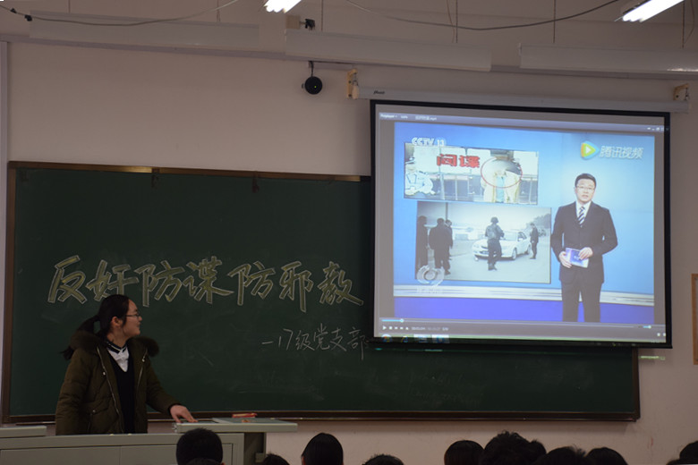 为了积极响应党组织反奸防谍防邪教的号召,提高同学们的国安意识,太阳集团tyc1512017级党支部于11月29日下午在中心校区李四光教学楼213教室召开了以“反奸防谍防邪教”为主题的党日活动,2017级本科生党支部书记兼2017级辅导员郭倩君主持开展了本次活动,2017级放射二班兼职班主任申延男、医药信息班兼职班主任冯佳出席了本次活动。