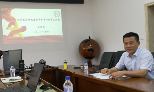 最后,公司党委赵国利书记以“让党旗在防控疫情斗争第一线高高飘扬”为主题为大家讲了一堂党课,他从疫情期间国际国内形势,从疫情中我们看到什么,以及发挥党员先锋模范作用有序推进复学复课三个方面进行了讲述,赵书记分享了广大公司员工参与防控疫情一线的抗疫故事,指出了我们国家之所以在短时间内取得了疫情防控的决定性成果,充分体现了我们党的坚强领导和我国社会主义制度的优越性、充分体现人民群众的磅礴力量、体现了冲锋在前的共产党员的责任担当。在常态化疫情防控下,大家应充分发挥共产党员的模范带头作用,做好当前的各项工作,在国家构建强大的公共卫生体系建设中、在公司双一流建设中发挥出重要作用。