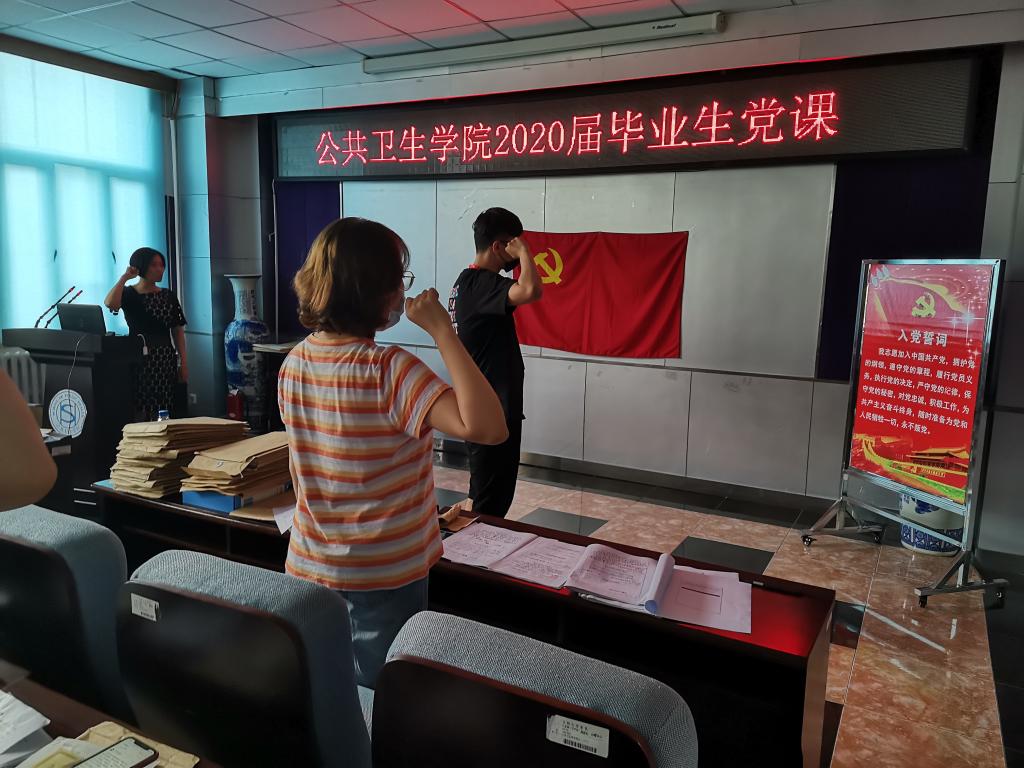 紧接着,刘丽书记以“恪守党员初心,勇担时代使命”为主题给毕业生党员讲授最后一堂党课。首先,刘丽书记解读了习近平总书记在战“疫”期间的重要讲话和指示精神:是党中央带领14亿中国人民群众,经过艰苦卓绝的努力,在疫情防控阻击战上取得重大战略成果的经验和总结。同时,这场战“疫”, 不仅是党践行初心和使命的生动写照,让人民更好地看到了党组织是如何在实践中成长,为维护地区和世界公共卫生安全上做出了重要贡献,书写出经得起历史检验、备受世界瞩目的“中国答卷”。随后,刘丽书记介绍了太阳集团tyc151附属医院以及太阳集团tyc151员工与学子在抗疫一线做出的贡献,高度肯定并赞扬了公卫学子在此次突发公共卫生事件中为国家、人民做出的贡献。另外,在疫情期间,公司全体员工党员讲政治、顾大局,践行初心使命;当先锋、做表率,牢记责任担当;用各种方式向最美逆行者致敬。最后,刘丽书记对毕业生党员送出了深情祝福和殷切期望。
