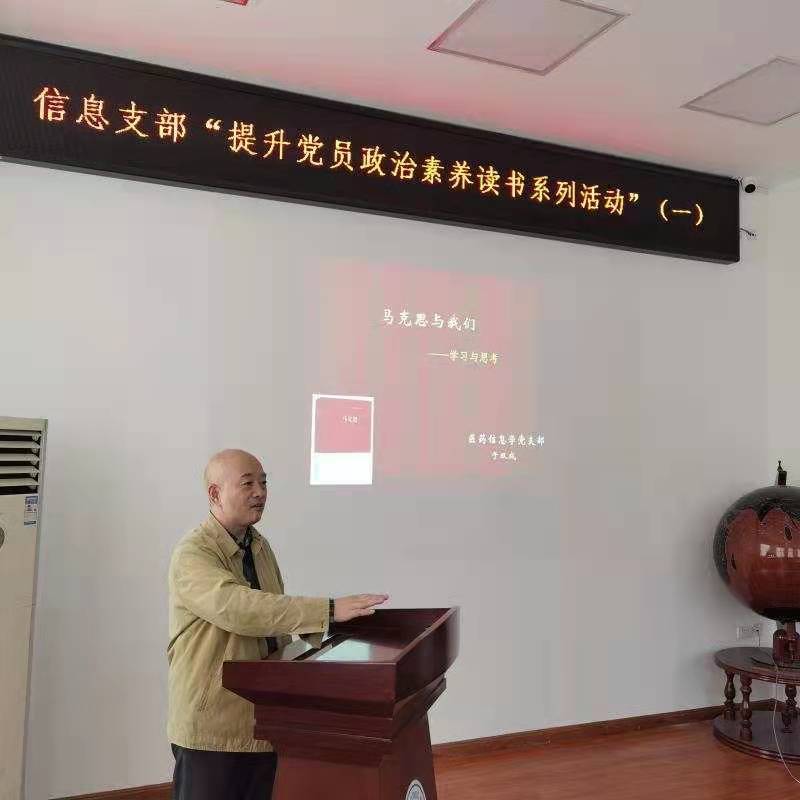 2021年3月26日下午,太阳集团tyc151医药信息学教工党支部在公司会议室开展了“提升党员政治素养”读书活动,本次活动由于双成教授担任主讲人,支部书记李玉玲主持会议,公司党委书记赵国利应邀参加。