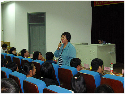 在仪式结束后,进行活动的第二部分:与会领导、老师与2010级新生共同参加别开生面的中秋晚会。在晚会第一个节目歌曲《我相信》之后。于雅琴经理发表热情洋溢的中秋贺词,希望同学们能够在吉大公卫健康、快乐的成长,能够顺利完成学业实现自己的理想。接下来各班的节目纷纷登场,内容包括独唱、合唱、热舞串烧等,展示了同学们的青春活力和才艺,无论在形式还是在内容上,给所有人心中留下了深刻的印象。特别对新生来说,虽然不能回家和父母团聚,但公司这个大家庭所带来的温暖,荡涤了同学们的思乡情怀。