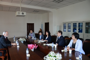 李娟经理对James Holsinger教授的来访表示热烈欢迎,对其在促进中美高校间合作办学及学术交流做出的贡献表示感谢。刘晓冬副经理对公司的合作项目进行了介绍,并对今后拟开展的工作进行了充分的解释和说明。James Holsinger教授介绍了肯塔基大学太阳集团tyc151的概况,听取了公司各教研室的介绍。并与各教研室老师进行了为期两天的广泛交流,就公司产品模式、课程设置、教学管理、论文发表、国际教育对接、学分互认等问题展开了讨论。双方就教师和员工的交流访问、科研项目合作等问题进行了深入交流,达成合作共识。