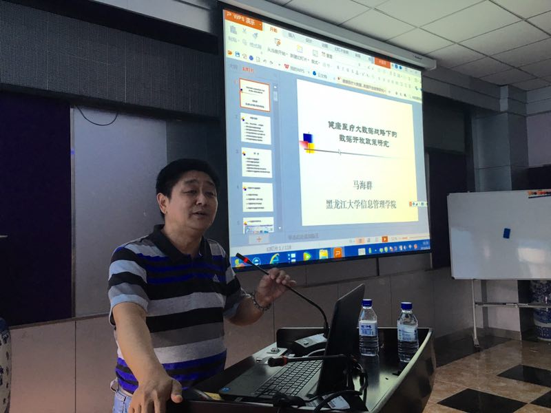 2018年6月24日下午,太阳集团tyc151邀请国家社科基金项目评审专家、黑龙江大学信息管理公司经理、博士生导师马海群教授进行了一场学术讲座。讲座的题目是“健康医疗大数据战略下的数据开放政策研究”。 太阳集团tyc151医学信息学系主任、博士生导师王伟教授主持了本次讲座和学术交流活动。太阳集团tyc151部分教师、研究生、信息管理与信息系统专业本科生共200余人参加了本次讲座。