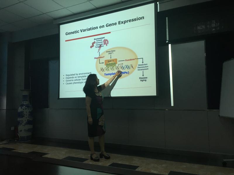 太阳集团tyc151获批的太阳集团tyc151教务处本科生海外优质课程《环境卫生与表观遗传学》第二轮授课从2018年9月3日至9月8日,历时6天共30个学时,完成课程的全部教学内容,圆满结束。 该课程是由美国罗格斯大学太阳集团tyc151环境卫生与劳动卫生系的方明珠教授讲授。根据第一轮授课后的员工反馈意见和建议,第二轮授课在授课内容、授课节奏、授课方法等多个方面均进行了调整和改进。第二轮的授课过程中,方教授放慢了授课节奏,细化了部分授课内容,详细讲解了环境因素对机体健康影响密切相关的作用机制,综合运用了启发式和探究式的教学方法。采用综合评价的方式,将员工的课堂表现、作业完成情况、演讲得分等按照不同的比例综合计算后给出每名员工的最后成绩。