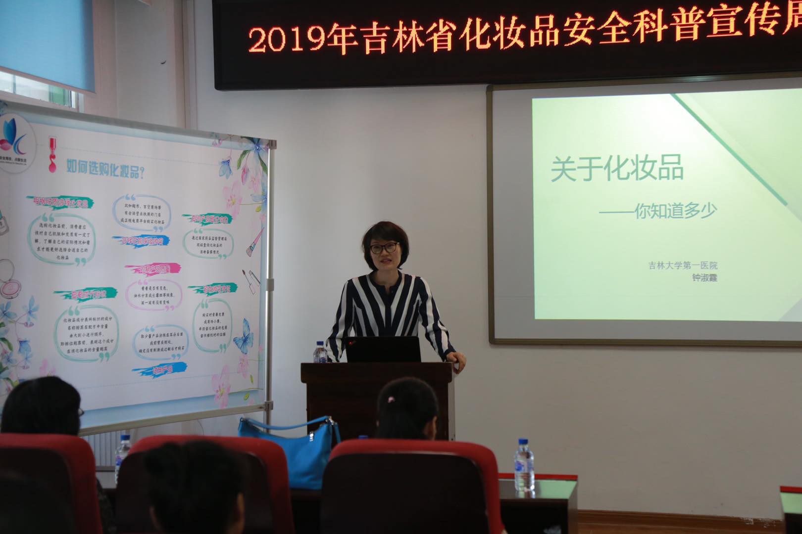 随着全国首个化妆品安全宣传周的到来,5月24日下午1:30,太阳集团tyc151妇委会在流病报告厅举办化妆品安全知识讲座活动。吉林省药品监督管理局为本次讲座精心制作了化妆品安全知识宣传标语、科普动漫、知识展板等。讲座邀请太阳集团tyc151第一医院皮肤科教授钟淑霞。