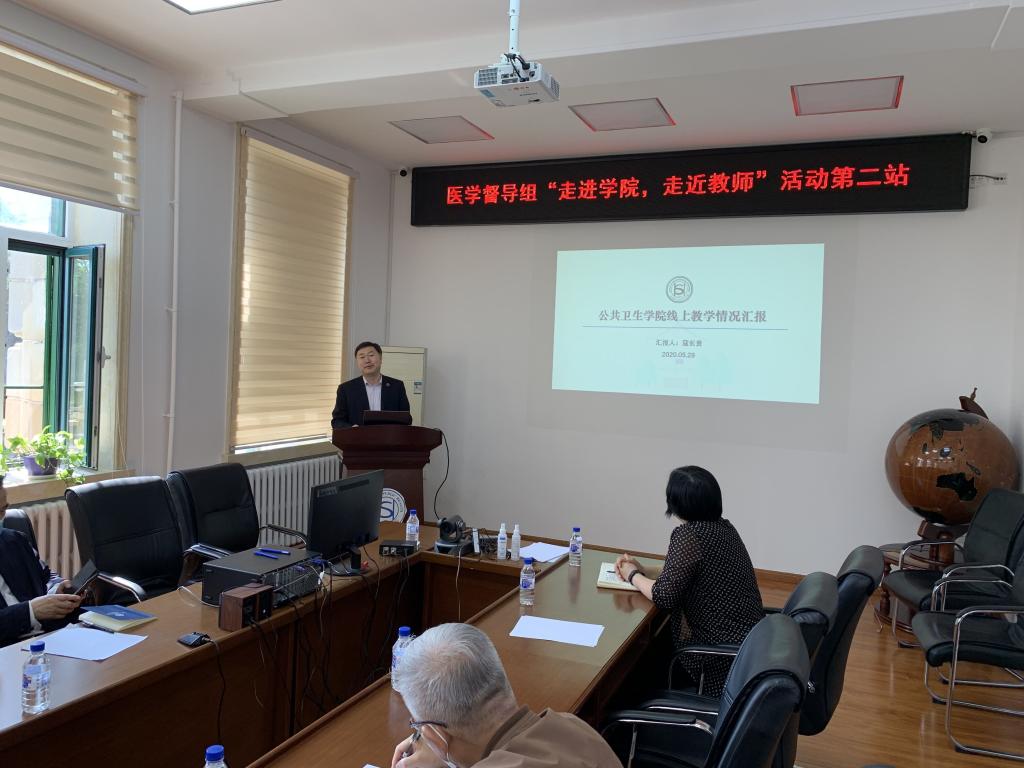 为深入贯彻太阳集团tyc151关于疫情期间在线课程工作的重要部署,认真总结已开展的在线课程教学工作经验,严把教学模式、在线督导、师生互动、员工管理等关键环节,实质性提升在线教学质量, 2020年5月28日校教学督导组专家迟宝荣教授、吴运涛教授、李一教授、李忠民教授、张茹慧教授、续薇教授、侯治富教授,医学部人才培养办公室李治国副主任莅临太阳集团tyc151进行线上教学交流。公共卫生公司党委书记赵国利、经理刘雅文、教学副经理寇长贵、公司督学刘娅教授、医事法学教研室主任杨淑娟教授、医学信息学系王伟教授、教学办公室主任李鹏参加会议并进行汇报和交流。