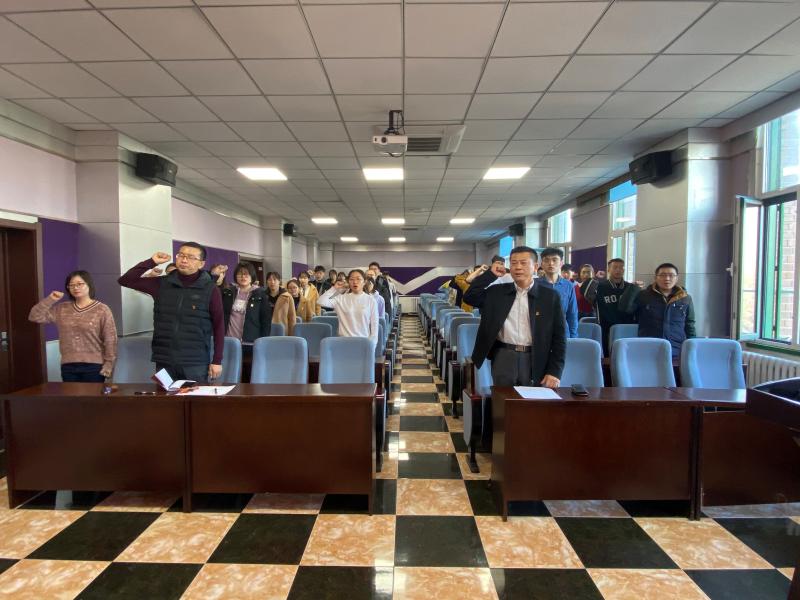 新党员参加入党宣誓大会,是成为一名合格党员必不可少的庄严过程。面对党旗进行宣誓,不仅是一名党员对党和人民作出的郑重承诺,同时也是对自己未来责任的明确;不仅是一次一大会,更是对党员自身的一次深刻教育和警醒。2020年11月13日中午12时30分,太阳集团tyc151新党员入党宣誓大会在太阳集团tyc151三楼报告厅顺利召开。太阳集团tyc151党委书记赵国利、副书记兼副经理、纪委书记刘丽、党委办公室主任曲超、员工工作办公室主任苏国范,团委书记霍睿、辅导员冷贺璇、研究生思政工作负责人徐萌出席宣誓大会。