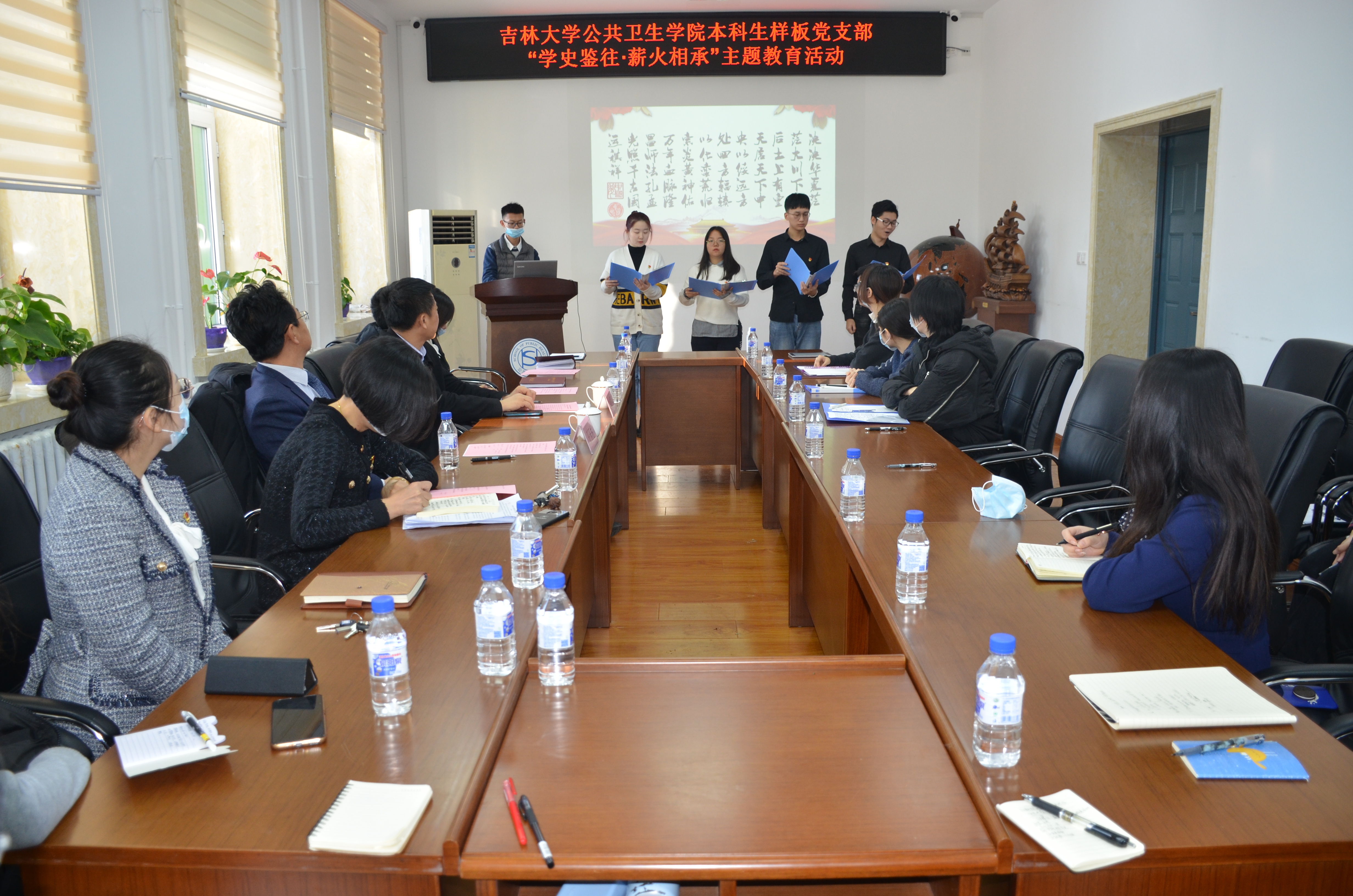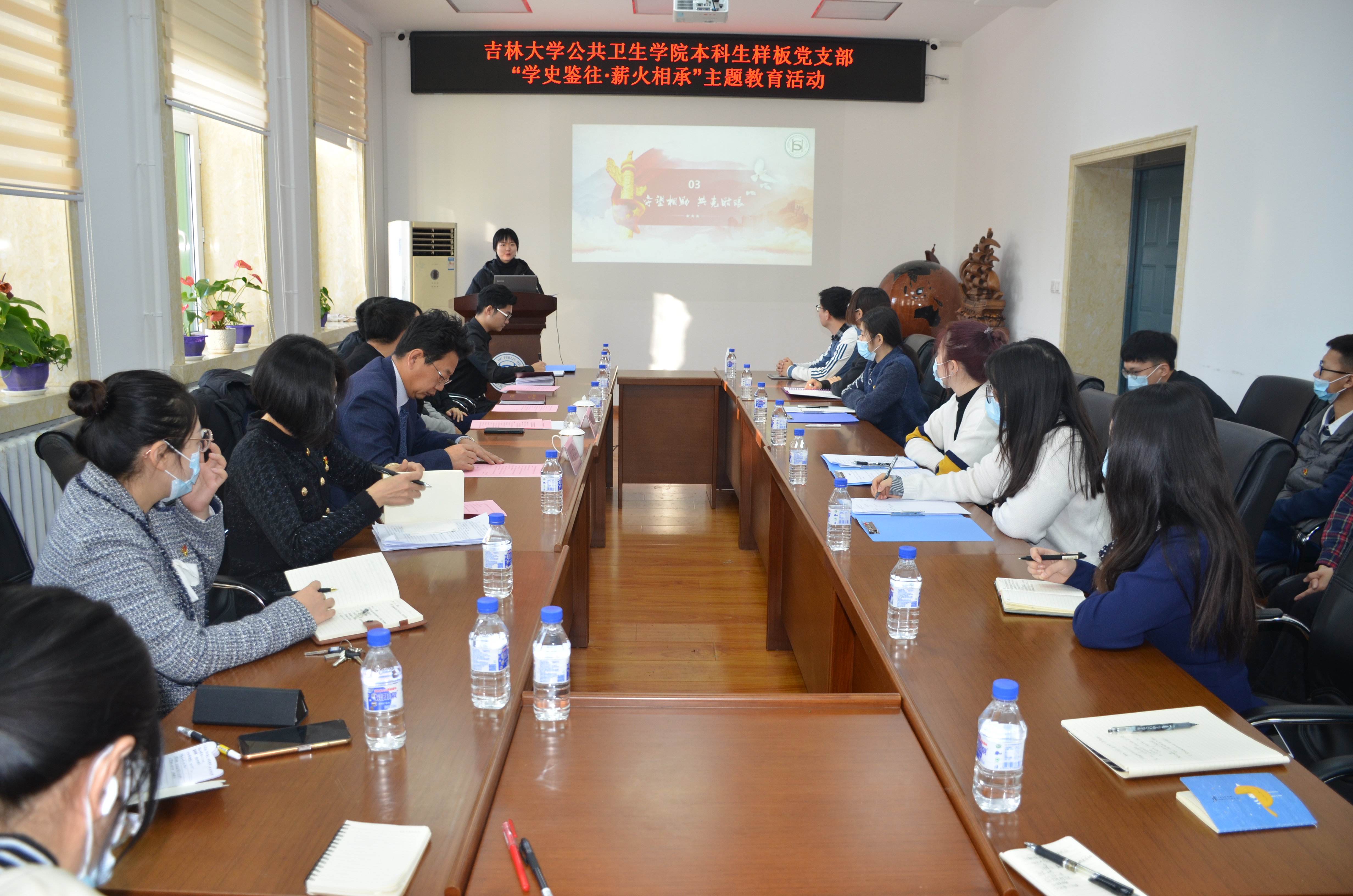 为深入学习贯彻落实习近平总书记关于党史、新中国史、改革开放史、社会主义发展史学习的重要讲话和指示精神,加强党员思想建设,太阳集团tyc151本科生党支部于12月1日在公司办公楼会议室举办了“学史鉴往,薪火相承”主题教育活动。太阳集团tyc151副董事长王玉柱、公共卫生公司党委书记赵国利、党委副书记兼副经理刘丽出席本次活动,本科生党支部书记、本科生党员代表参加了本次活动。