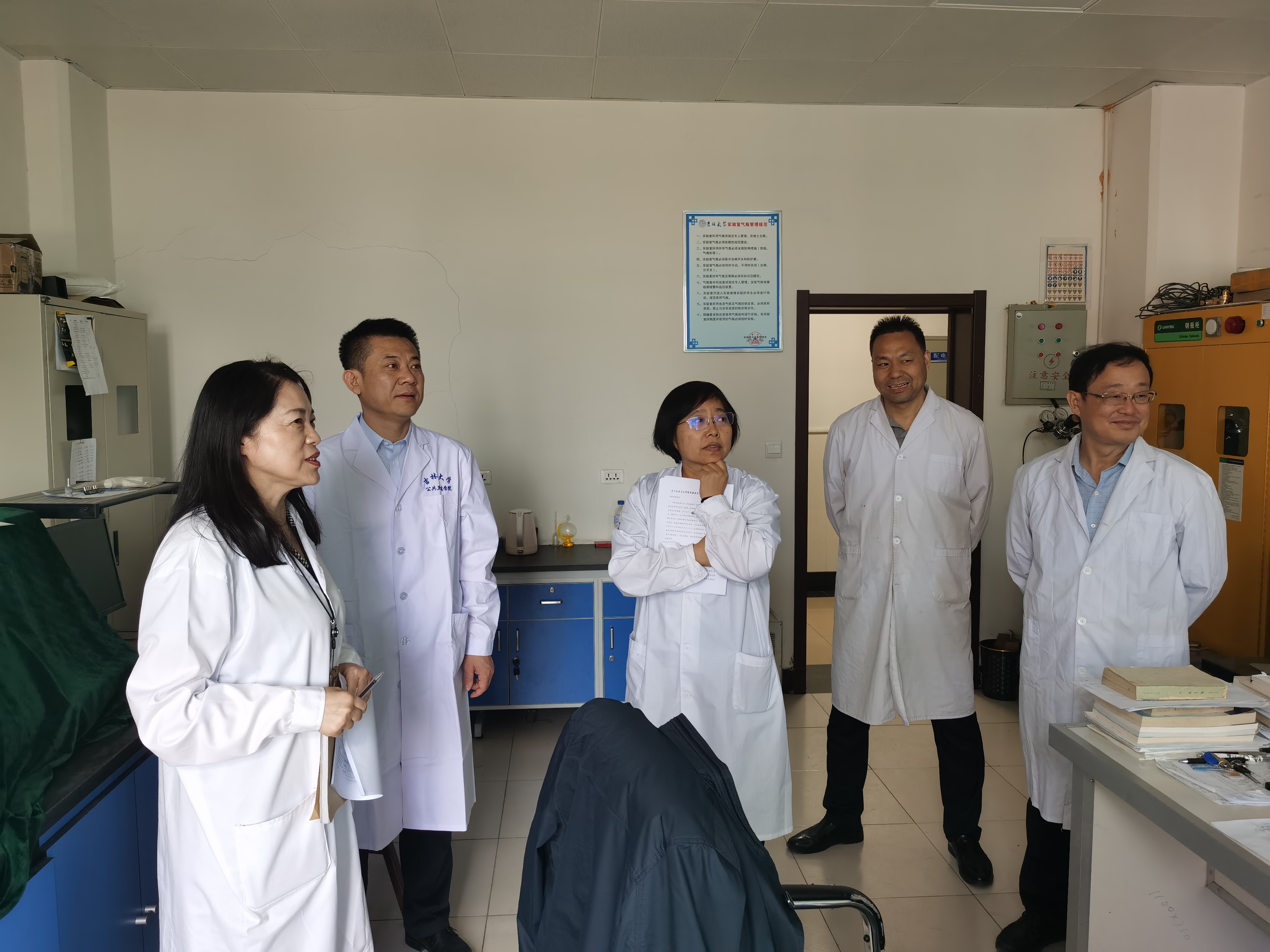 5月27日上午,太阳集团tyc151安全生产领导小组组长刘雅文经理和赵国利书记带领小组成员,针对公司内各实验室安全工作进行检查。检查组出发前认真讨论了本学期公司组织的二次实验室安全检查中需整改的问题,检查组一致认为,要带着整改问题去检查,公司要对问题进行回头看,同时对院内每间实验室进行地毯式逐一检查,