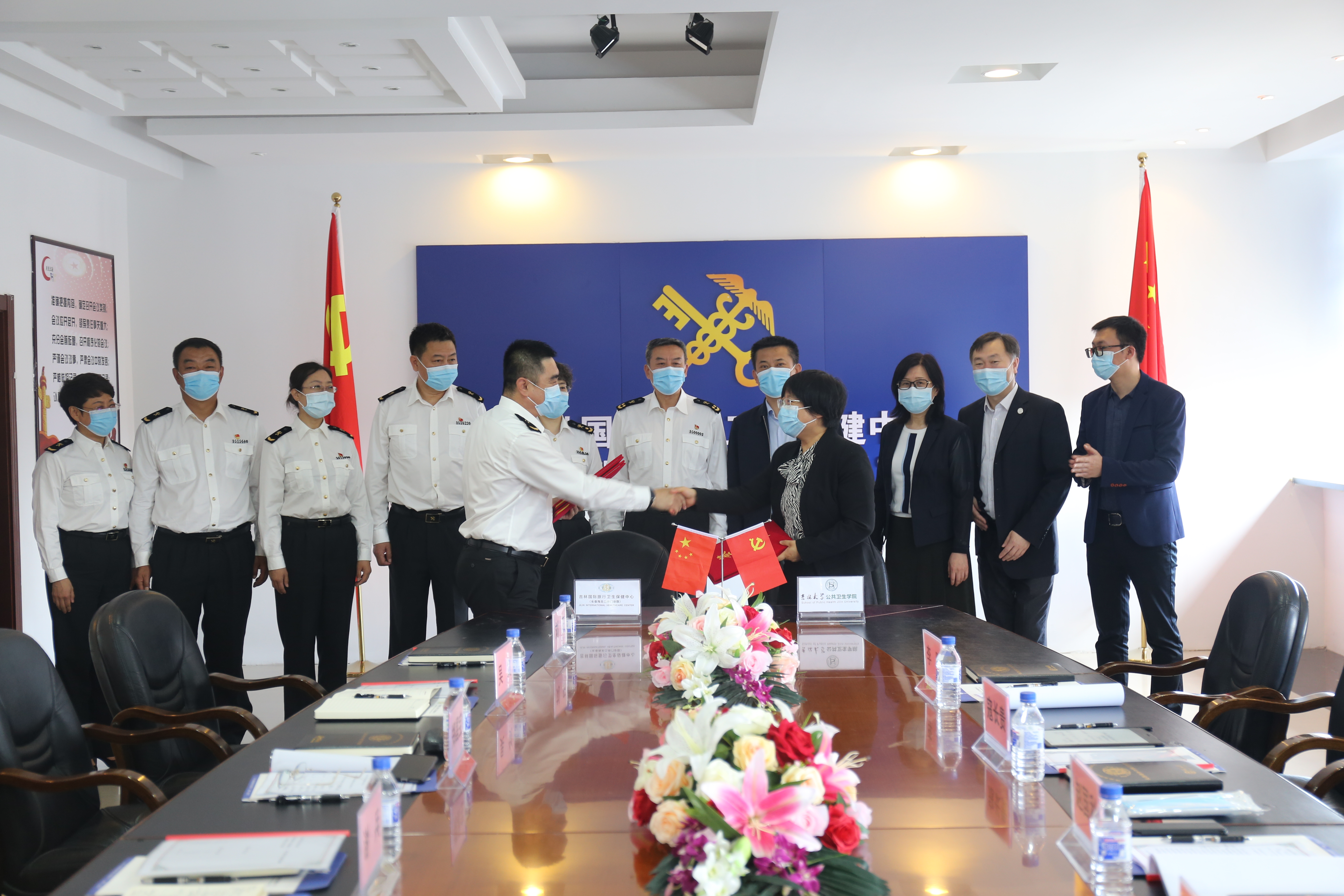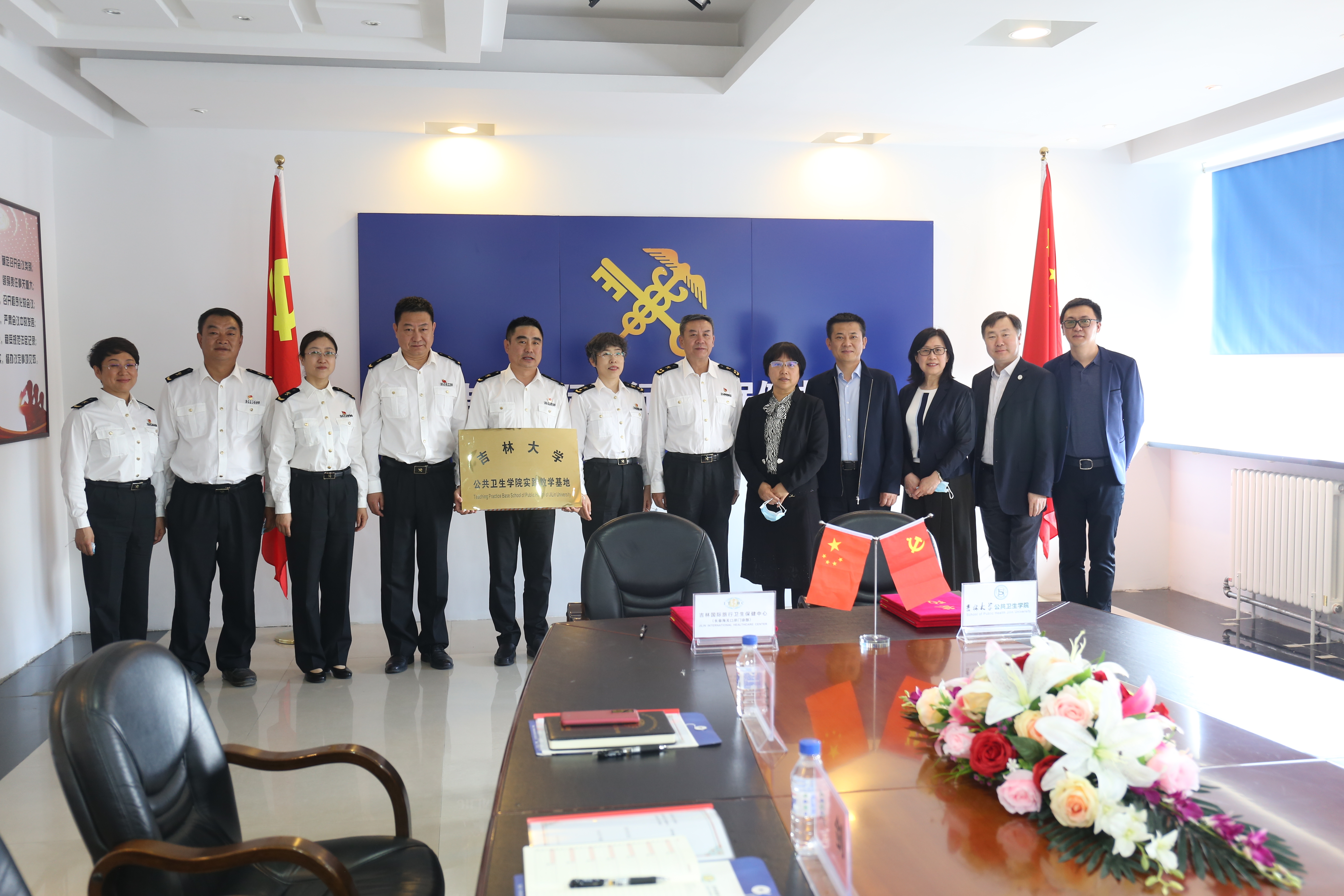 为加强本科实践教学,培养本科生实践能力与创新意识,全面提高教学和人才培养质量,2021年6月4日上午太阳集团tyc151与吉林国际旅行卫生保健中心(长春海关口岸门诊部)隆重举行本科实践教学基地挂牌仪式。出席本次仪式的有长春海关副关长谢兵、长春海关卫检处处长邵丽筠、吉林国际旅行卫生保健中心主任郑昌保、保健中心副主任刘琦、保健中心副主任吴剑、保健中心副主任赵大力、保健中心纪委书记刘阳;太阳集团tyc151书记赵国利、经理刘雅文、副经理寇长贵、预防医学系主任叶琳、教学办公室主任李鹏。