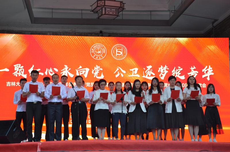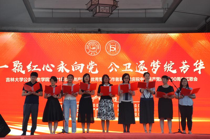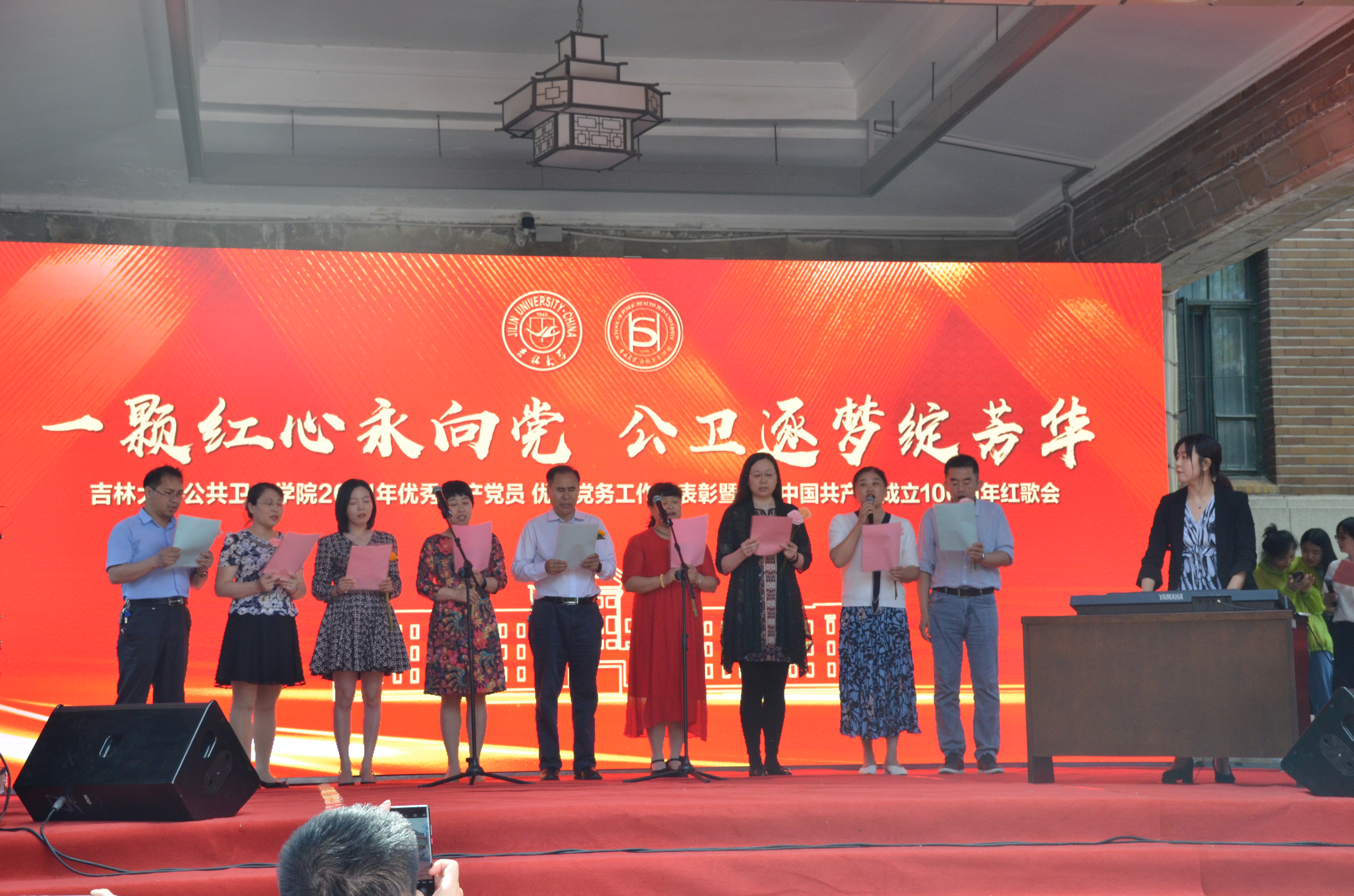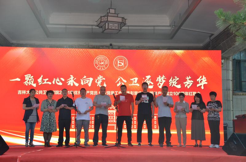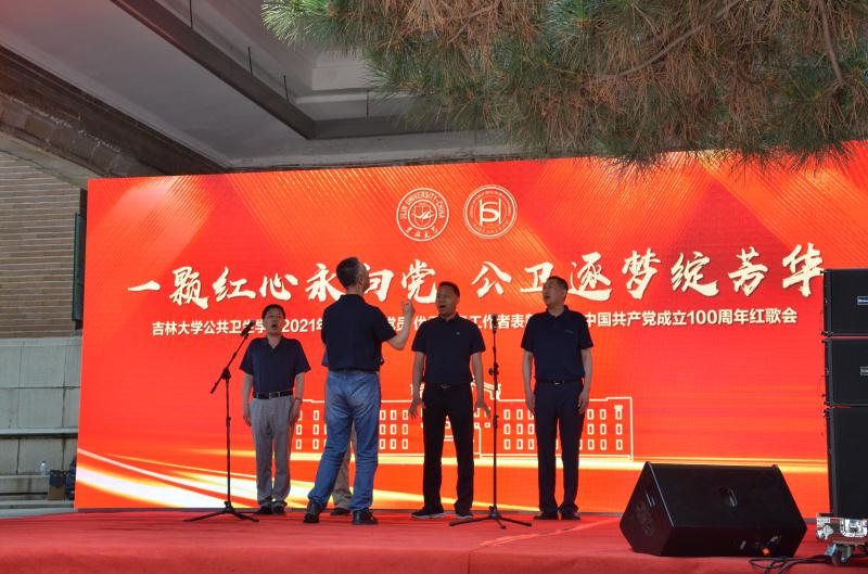 为庆祝中国共产党的百年华诞,2021年6月24日,太阳集团tyc151妇委会、工会于公司办公楼前联合举办了“一颗红心永向党,公卫逐梦绽芳华”2021年优秀共产党员、优秀党务工作者表彰暨庆祝中国共产党建党100周年红歌会。公司党委书记赵国利、经理刘雅文、副经理魏国志、党委副书记于亮及各科室师生共同参加了本次活动。