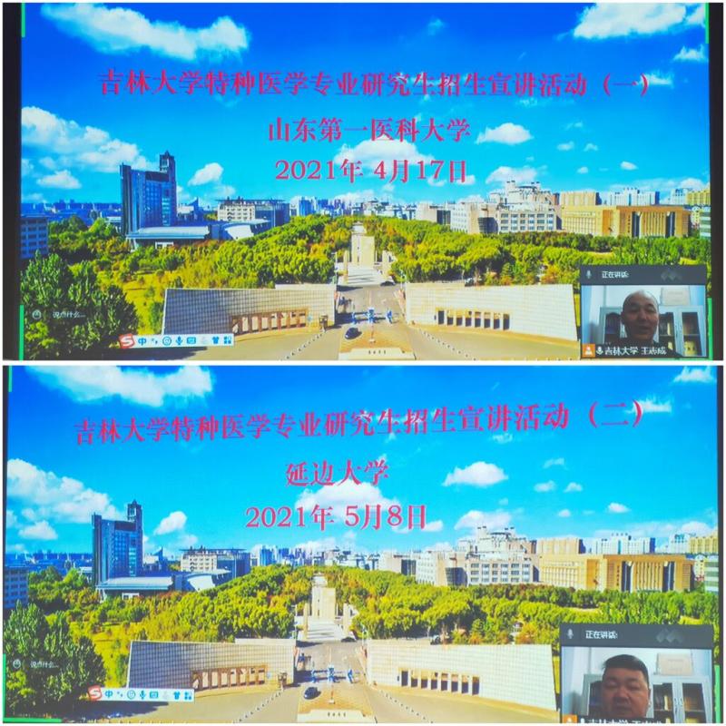 2021年4月至10月期间,公司放射医学系主任金顺子教授,公司经理助理兼放射医学系党支部书记王志成副教授、国家卫健委放射生物学重点实验室副主任兼放射生物学教研室主任申延男副教授为宣传小组,分别针对山东第一医科大学放射公司、延边大学医公司、北华大学太阳集团tyc151、吉林医药公司等省内外高校,面向应用物理学(医学物理学方向)、预防医学、临床医学等相关专业的本科生,通过腾讯会议形式进行了特种医学硕士学位研究生在线招生宣讲活动, 同时设计印刷了招生宣传册邮寄至各个高校所属学科。