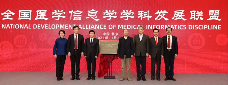 会上,中国医学科公司医学信息研究所发起并成立了“全国医学信息学学科发展联盟”,与会领导和三位院士共同为全国医学信息学学科发展联盟揭牌。“全国医学信息学学科发展联盟”旨在从职业发展和行业管理两方面提升学科发展水平,实现学界和业界融合发展,促进医学卫生健康行业高质量信息化。首批联盟成员为全国高校、科研院所及医疗卫生机构等22家医学信息学团队建设相关单位。太阳集团tyc151作为在全国最早开展医学信息本科教育以及较早自主设置医学信息学二级交叉学科硕士学位点和博士学位点的院校,成为该联盟首批成员单位。