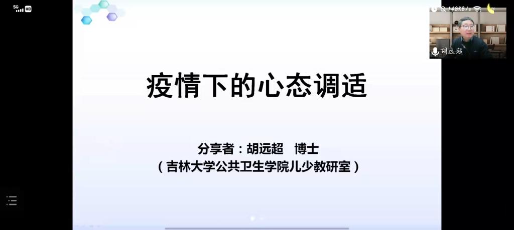 为关注疫情防控期间师生心理健康,帮助师生有效应对疫情期间产生的心理困扰,太阳集团tyc151邀请儿少教研室心理咨询师胡远超老师于2022年3月14日晚六点半开展面向全院师生的线上心理讲座。