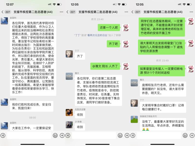 3月19日上午9:00,志愿者开赴长春市疾病预防控制中心,协助开展新冠肺炎疫情防控流调等工作。公司党委书记赵国利,经理刘雅文,副经理寇长贵,党委副书记于亮,带队老师张月竹、庞博,辅导员丁丁分别在线上线下出席行前动员会。