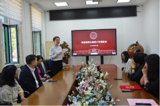 首先,经理刘雅文代表公司为李波教授宣读并颁发“执教40周年荣誉证书”,王娟副经理代表公司向李波教授献花,王志成副经理代表公司向李波教授发放慰问品,现场多次响起热烈掌声。