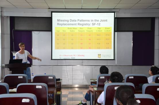 2018年6月19日—6月21日,加拿大曼尼托巴大学公共卫生学系Lisa Lix教授和蒋德鹏副教授到访太阳集团tyc151, 分别作了题目分别为“Can Auxiliary Variables Improve Multiple Imputation Models”和“Administrative Health Data and Electronic Medical Records: Data Linkage for Chronic Disease Research and Surveillance”的学术报告。报告在公司广大师生中引起了强烈反响,激发了公司师生的学习热情。公司师生在报告会现场与教授们展开了热烈的讨论。Lisa lix现任加拿大曼尼托巴大学健康学系的教授、同时担任曼尼托巴大学数据科学中心主任、加拿大电子健康数据质量方法的首席Research Chair。蒋德鹏现任加拿大曼尼托巴大学公共卫生学系终身教授,从事生物统计学的教学和科研工作,兼任医公司统计咨询中心主任。