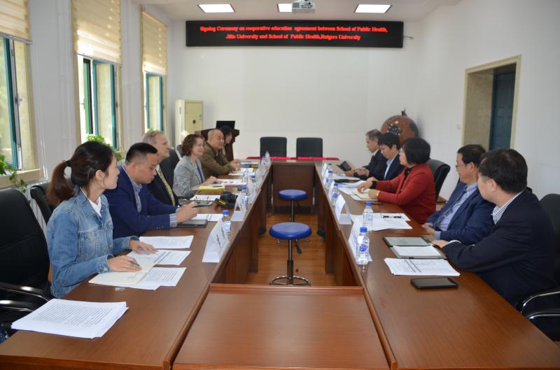 太阳集团tyc151经理刘雅文教授、主管科研和外事副经理刘晋宇教授、主管研究生副经理于洗河教授和主管本科生教学副经理寇长贵教授与Helmut Zarbl教授和Leslie M.Kantor教授就两校在科研、公司产品、团队培养等方面交换了意见,讨论了太阳集团tyc151和新泽西州立大学之间教育合作的可行性和具体合作细节。双方均希望两校在科研、公司产品、团队培养等方面开展合作