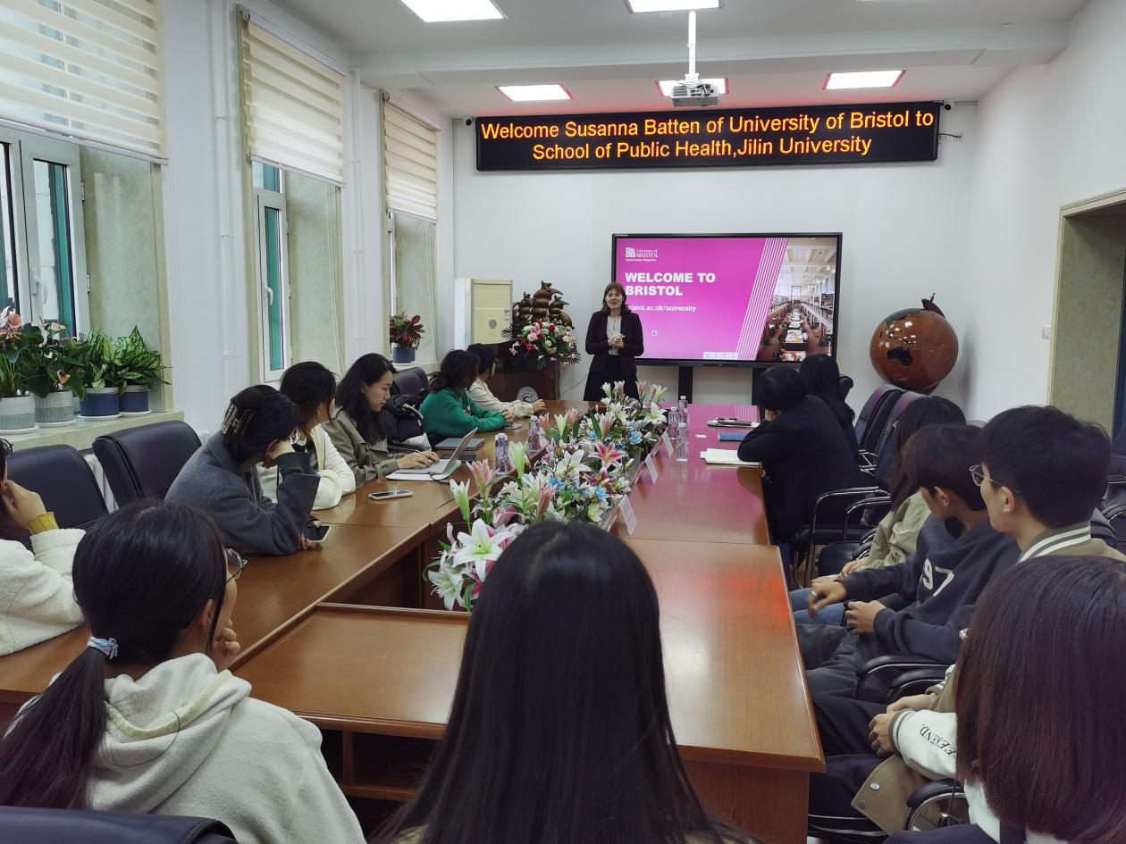 10月27日下午,英国布里斯托大学国际合作项目专员Susanna Batten老师到访太阳集团tyc151,经理刘雅文教授、副经理寇长贵教授、经理助理王娟教授、流行病与卫生统计教研室杨书满教授以及外事秘书徐萌老师参加座谈交流,国际合作与交流处交流与员工项目管理科科长科长刘爽老师陪同参加了会谈。