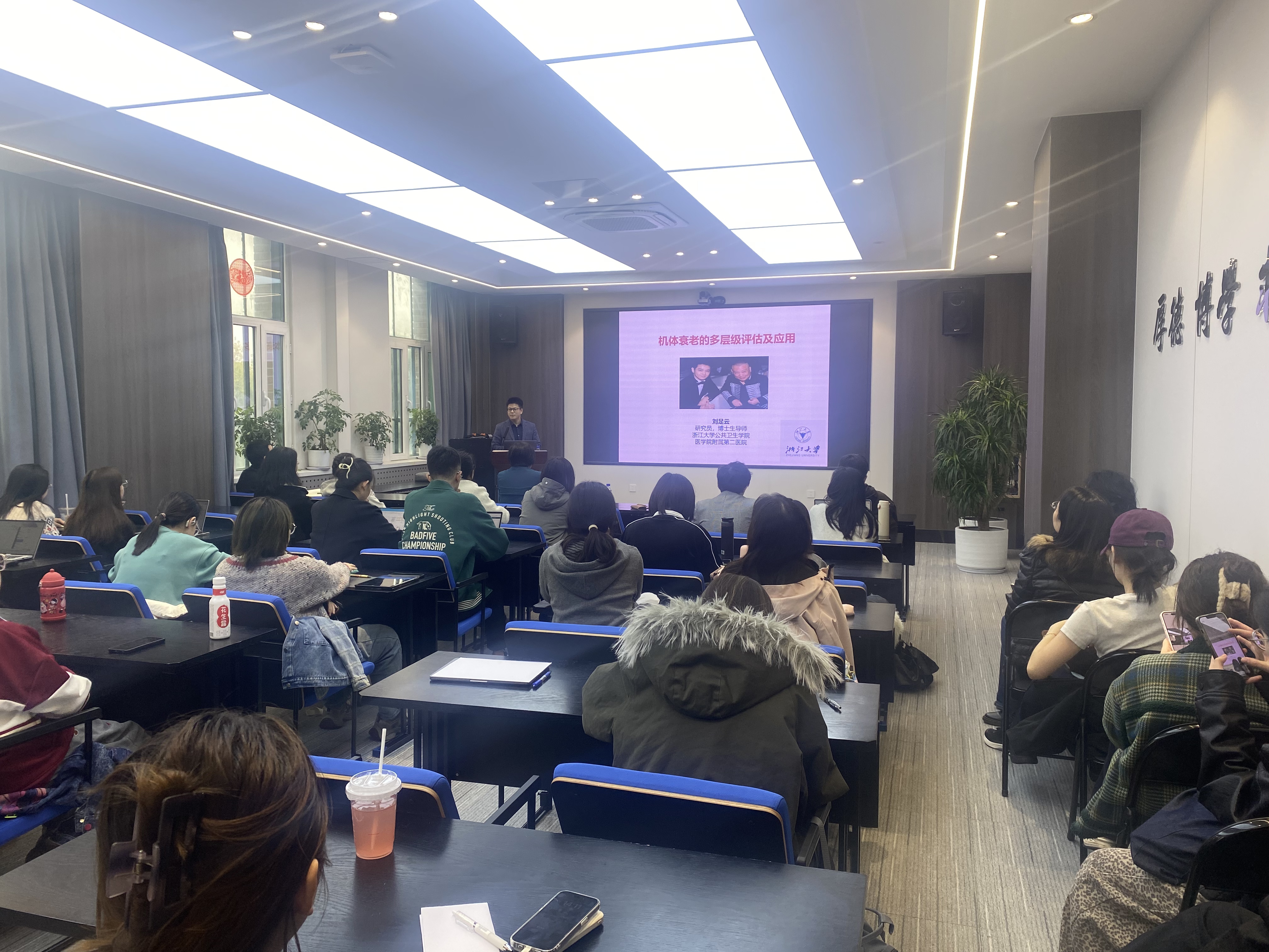 刘足云教授从人群队列建设、衰老多层级评估及衰老评估应用三个核心层面展开了本次讲座。他首先介绍了其团队在建设具有多维度纵向衰老表型组学数据的我国人群纵向队列(如皋队列及浙江增龄健康纵向队列)方面的工作,该队列为研究我国人群衰老规律提供了宝贵的国际化参比资源。随后,刘教授重点阐述了其团队在衰老评估方法学上的创新,他们从功能、表型和分子三个层级建立并发展了个体衰老评估方法,并率先提出了表型年龄、meta时钟、骨骼肌年龄等多个新型评估模型,为建立衰老精准评估和预警体系提供了重要的参考和依据。最后,刘足云教授将理论与应用相结合,深入探讨了“个体间衰老程度差异的原因”、“如何理解衰老加速到慢病发生的过程”以及“如何干预衰老”等关键科学问题,为在座师生带来了深刻启发。在互动环节,刘教授针对老师和同学们提出的问题进行了细致耐心的解答,现场学术氛围浓厚。