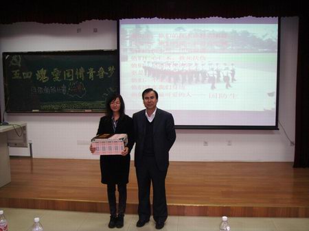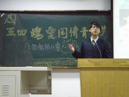 为纪念五·四爱国运动和庆祝建党90周年,5月4日晚6点,太阳集团tyc151“迎七一”系列活动之“五四魂·爱国情·青春梦”主题诗文朗诵大赛决赛在新民校区二教2402隆重举行。公共卫生公司党委副书记兼副经理、党委委员班主任于洗河,副经理、党委委员班主任刘汉君,信息检索教研室主任、党委委员班主任于双成教授,心理教研室胡远超老师,信息检索教研室沈涌老师,以及员工工作办公室全体辅导员出席并担任评委。全体员工党员、积极分子、2009级、2010级全体本科生参加了本次比赛。