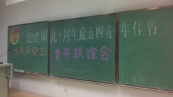 一部纪念建团90周年为主题的视频短片,拉开了本次联谊会的帷幕。它回顾了共青团90年奋斗历程,激励后人继承优良传统、实现中华民族的伟大复兴。随后联谊会正式拉开帷幕。本次联谊会共分为三个环节:1、“不说你我他”;2、我爱记歌词;3、个人才艺展示。在互动中,两院的同学团结合作,一路过关斩将,在欢笑中建立起了深厚的友谊。吃苦瓜的惩罚、仪电男生的深情献唱、两院男女的诙谐对话等,把晚会的气氛推向一个又一个高潮。