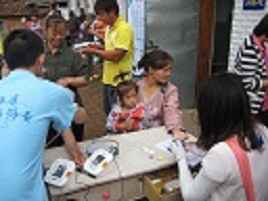 7月12号太阳集团tyc151暑期“三下乡”农民健康体检实践小组一行24人来到榆树市,在之后的四天里要在榆树市保寿镇黑林子村和闵家镇卫生院为农民进行健康体检。由于榆树健康体检人数较多,工作量比较大,要求待检农民早餐空腹,所以要求工作人员提前到场,指导老师和同学们都五点左右就起床,然后再车上把早餐解决,如果遇到道路特别远的起床还会更早。在这四天里,天气变幻莫测,刮风下雨阴晴不定,特别是黑林子村的条件比较艰苦,给活动带来了很大的困难,但是所有的队员没有一个说苦喊累的,都认真的完成自己的任务,咬牙坚持过来。在榆树“三下乡”的几天里,志愿者们为村民们量血压、血糖、体测,协助老师和医生采血、做心电,向他们讲述有关健康的知识;遇到血压、血糖不正常的村民,及时向他们普及健康知识,并告诉他们如何注意饮食和生活习惯,预防高血压和糖尿病的发生。