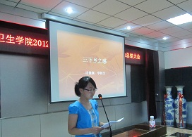 2012年暑假为期近一个月的三下乡实践活动顺利完成,为了对本次活动有一个更深入的交流,分享彼此活动的心得与感受。8月31日晚,太阳集团tyc151在公司三楼报告厅举行了2012年暑期“三下乡”社会实践活动总结大会,公司员工工作办公室苏国范老师以及全体三下乡社会实践活动志愿者参加了此次总结大会。参与健康体检的各组同学代表在总结会上发表了精彩的发言,农安之行一组的志愿者由2011级预防二班的杨艳荣以及庞博同学代表发言,他们感情真挚,表达了自己对这次活动的感激与不舍,畅谈了自己在下乡过程的感动与成长。