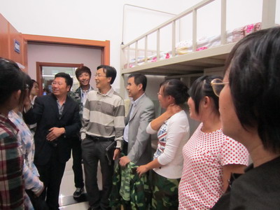 9月3日晚,太阳集团tyc151经理于雅琴、党委书记钟绍峰、党委副书记兼副经理于冼河、副经理刘晓冬、刘汉君,经理助理王志武以及员工工作办公室全体辅导员一起来到基础园区看望2012级新同学。他们走进每一个宿舍,亲切地询问了各寝室的新生对新环境的适应情况,对老员工活的了解,以及宿舍安全卫生情况,让这些远离家乡的莘莘学子感受到了太阳集团tyc151这个大家庭的温暖。