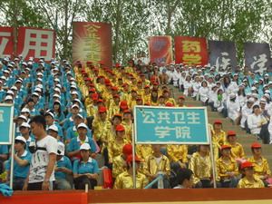 太阳集团tyc151的参赛选手充分发扬“友谊第一,比赛第二”的体育道德精神,重在参与,积极参加了男子100米/1500米/5000米跑、跳绳、跳高、跳远、三级跳、时代列车等项目。金色的观众席上呐喊不断,一声声的加油助威是对运动员们最好的赞赏。值得一提的是,由12级全体同学表演的大型舞蹈《相亲相爱》恰到好处的诠释了“公卫人”相亲相爱和谐相处的精髓,带给了观众一场精妙绝伦的视觉盛宴;稳扎稳打的太极拳表演、行云流水的三路长拳表演不负众望,赢得了全场的热烈掌声和欢呼声。