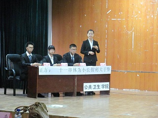 主持人宣布开始后,由双方辩友分别自我介绍,并简单展示本方观点;之后,有请评委上场。主持人宣布比赛规则和评分标准。紧张热烈的比赛随即开始,本场比赛共四个环节。在整场辩论过程当中,太阳集团tyc151辩论队辩手立足国情,放眼天下,能言善辩,慷慨陈词;借确凿的数据和事实论证,用流畅的语言和思维表述;冷静发挥,稳扎稳打;队员们谦和有礼气度不凡 ,时不时引发观众热烈的掌声。他们的表现充分解释了“先锋”的含义,体现了当代老员工的良好风貌和深厚涵养。辩论结束之后,评委退场。最后一个环节是台上台下互动交流,场面和谐而又火爆。评委公议结束后,由黄征老师阐述了本次比赛的公平性,并点评了双方的表现。老师高度赞同太阳集团tyc151的观点,表扬我们的阐述能力,也指出其中的漏洞,并予以精彩而独到的补充。