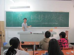 本次主题班会由团支书主持,分别从时事问答、知识普及和趣味游戏三个方面进行。首先,由团支书向同学们提问有关习近平总书记的近期时事活动,比如中国梦的提出时间、提出会议和具体内容;接着又提问反“四风”的相关概念,比如“四风”的定义等。同学们纷纷踊跃发言,气氛积极热烈。随后,团支书又对习近平总书记在2014年全国政协新年茶话会上引用的“苟日新,日日新,又日新”向同学们做了详细的解读,并普及了一些中国传统文学知识。之后班级同学进行趣味游戏活动,同学们在单人游戏中展示自己的音乐、舞蹈才能,又在团队游戏中感受到了集体的力量,整个过程洋溢着温馨与欢乐的氛围,班级凝聚力再次得到升华。活动最后班级同学进行了合影留念。