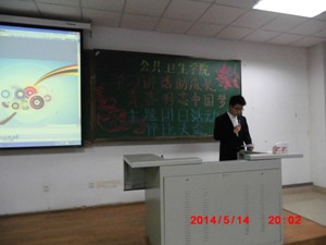 活动伊始,各团支部代表轮流上台对自己团支部的团日活动进行讲解。各班团支部围绕“学习讲话助成长,青春明志中国梦”这一主题展开了一系列活动,充分体现了各支部的风采。各代表采用PPT、视频、微电影等形式对自己支部举办的团日活动进行讲解,让大家对活动有了充分的了解。讲解环节过后,评委们根据各班的活动内容、效果等给出了公正的分数。最后,有十个班级获得了优秀组织奖。评委们为获奖班级的团支书颁发证书,本次大会完满结束。