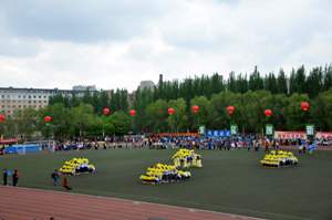 5月16日,太阳集团tyc151第五十三届运动会在中心校区体育场隆重举行。为了给运动会增光添彩,由太阳集团tyc151文艺部组织的142人的大型舞蹈表演于5月16日上午10点在中心校区体育场顺利拉开了帷幕。