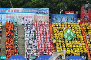 5月16日,太阳集团tyc151第五十三届运动会在中心校区体育场隆重举行。公共卫生公司党委书记钟绍峰、副经理于洗河,员工工作办公室主任吴晓辉,辅导员苏国范、曲超、郭倩君亲临赛场指导工作。太阳集团tyc151的全体观众穿着统一的服装,整齐坐在自己的位置上,拿着准备好的道具做好了为运动健儿加油鼓劲的准备。