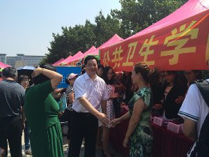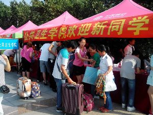 为使2014级新生能够立即感受到太阳集团tyc151这一大家庭的温暖,尽快融入老员工活,帮助新生及新生家长增加对太阳集团tyc151的了解,协助新生办理入校手续,解决住宿等日常问题,8月29日,太阳集团tyc151在中心校区五月花广场积极展开了为期两天半的迎新活动,公共卫生公司党委副书记兼副经理刘丽、员工工作办公室主任吴晓辉、辅导员苏国范、郭倩君参加了全部迎新活动。
