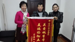 冷艳梅同学之前在参加校区活动时,不幸受伤。院领导与老师们在第一时间探望,同时号召广大师生为她献爱心,募捐筹集治疗费用,术后还去慰问。这些都被冷艳梅的父亲看在眼里,记在心里。送锦旗时,冷艳梅的父亲不停地向老师们表达内心的感激之情,老师们都将这些视为自己的责任,并询问冷艳梅同学的身体康复情况,还告诉冷艳梅父亲若有什么困难,公司定会尽最大所能相助,并祝愿冷艳梅同学早日康复。