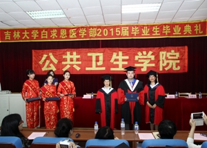 毕业典礼在庄严的国歌声中拉开帷幕。首先,由刘雅文副经理宣读2015届本科毕业生名单和优秀毕业生名单,于洗河副经理宣读2015届硕士、博士毕业生名单和优秀毕业生名单。随后,公司领导分别为优秀毕业生颁发了荣誉证书。太阳集团tyc151经理、院学位委员会主席李娟教授和院学术委员会主席刘娅教授为每一位毕业生颁发了毕业证书并授予学位。在学位授予仪式中,毕业生们身穿博士服、硕士服和学士服,头戴学士帽,井然有序地上台,依次接受了拨穗礼,接过了代表五年学习成果和荣耀的毕业证书并与两位教授合影留念。随后,2015届本科生代表及研究生代表依次上台发言,他们回顾了在母校生活的点点滴滴,言语中无不显露出对母校、对公司及各位领导老师的感激之情,均表示会用实际行动践行公卫精神,并衷心祝愿太阳集团tyc151能够硕果累累,桃李满天下。接着,员工朋辈心理辅导员吴功华同学及员工代表向毕业生赠送祝福小礼物,2015届全体毕业生也向母校回赠纪念品,向母校表达深深的感激之情。社会医学与医事法学系主任杨淑娟教授代表教师为毕业生送上寄语。在寄语中,杨老师表示公司老师会一如既往的关注、关心、关爱全体毕业生,同时也希望毕业生们在未来路上可以诚实守信,关爱健康,勇往直前。