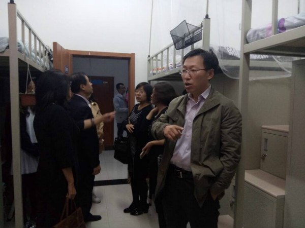 为更深入地了解2015级新生在军训期间的身心体验,传授给新生实用的经验指导,使新生们更快更好地适应即将开始的老员工活,同时也为2015级新生送去一份中秋前的温暖和关怀,9月24日下午6时整,太阳集团tyc151经理李娟,公司党委书记钟绍峰,公司副经理于洗河、副经理刘雅文,党委副书记兼副经理兼2014级辅导员刘丽、2012级辅导员郭倩君老师与2015级辅导员苏国范老师集体来到中心校区,于北苑二公寓、南苑二公寓对2015级太阳集团tyc151新生进行了走访慰问。