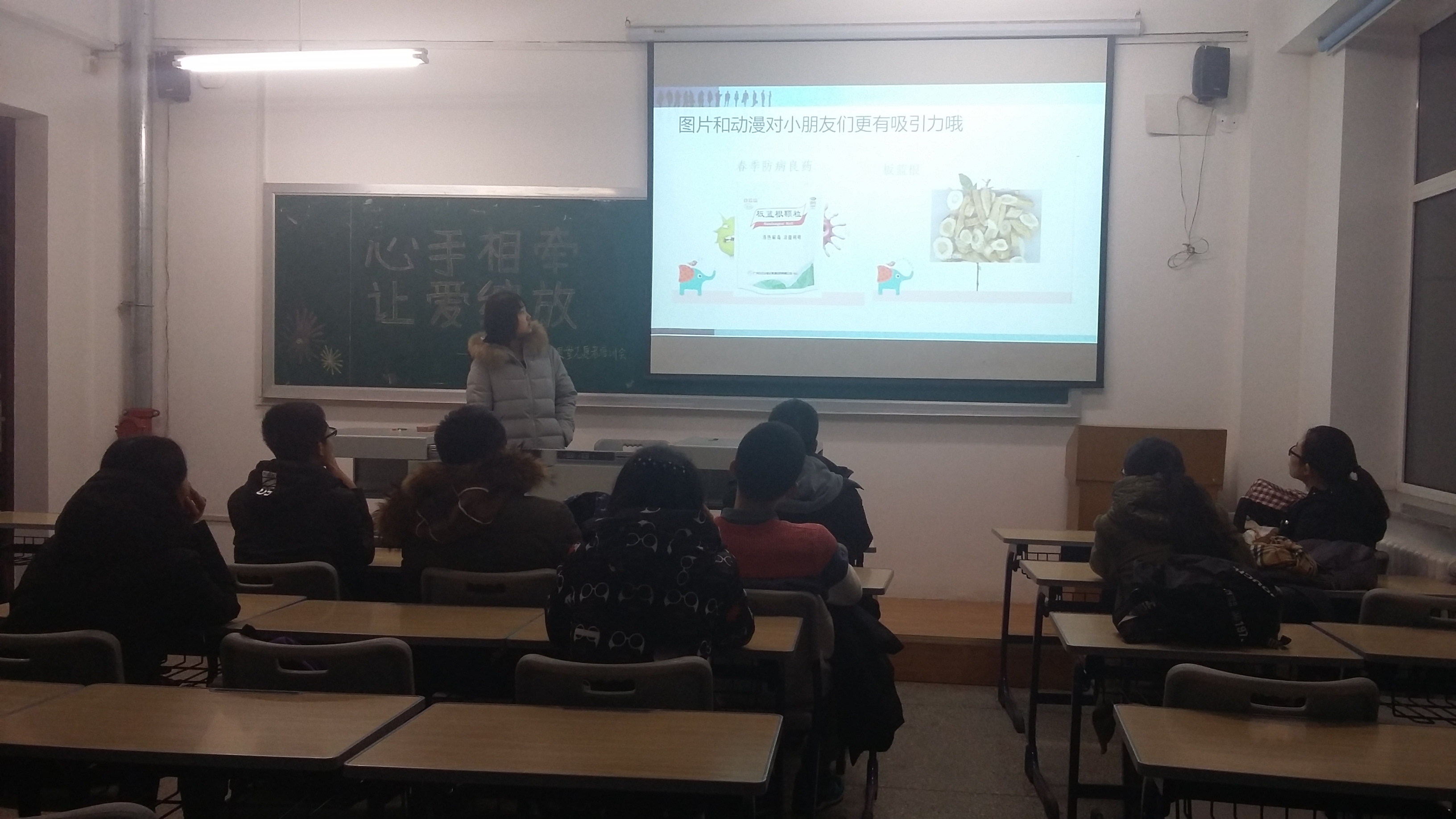 会上,志工部的部员助理为大家介绍了此次志愿服务的基本流程,让同学们对活动内容有了初步了解。随后,2015级部员从自身志愿服务经历出发,向同学们传授了“预防知识进课堂”志愿服务的经验,并强调了授课中语速、用词、语言风格等方面的注意事项。例如,考虑到小朋友的特点,授课素材的选取、模板的形式都不能太过严肃,而应迎合孩子的兴趣,可以灵活运用图片与动漫,以达到寓教于乐的目的。培训的过程中,志愿者们在学习经验的同时,也清楚地认识到,端正的服务态度和适宜的服务方法同样重要。