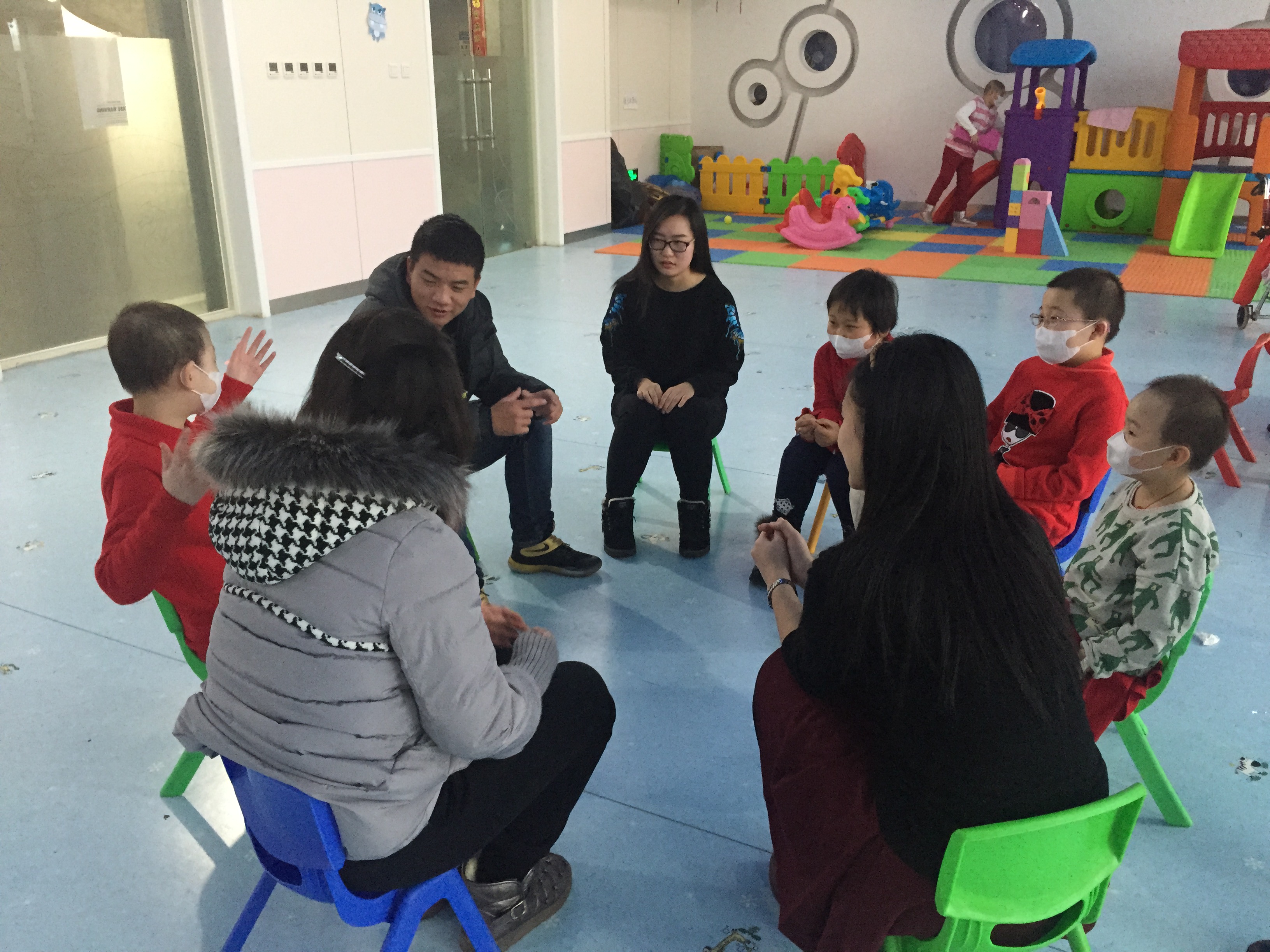 志愿者本次来到的这间病房,最小的患儿还不到四岁。活动的一开始,志愿者们的“突然造访”,使白血病患儿们显得有些紧张和拘束。面对这些陌生的大哥哥、大姐姐,孩子们有些不知所措。然而,当志愿者们为病房里的宝贝们献上精心准备的节目后,现场气氛逐渐破冰,孩子们慢慢变得活跃起来。通过一些心理素拓的小游戏,在志愿者的真诚沟通和不断努力下,白血病患儿终于逐渐敞开心扉,与志愿者们愉快地玩耍了起来。