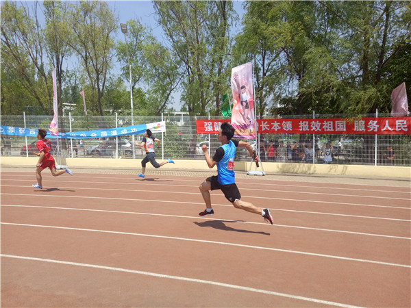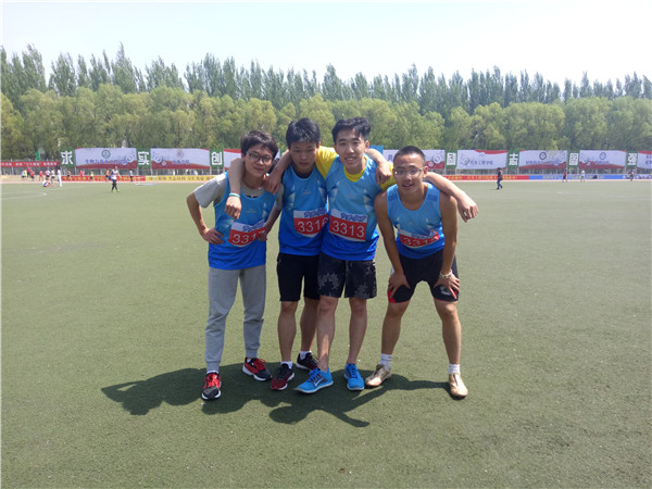 5月18日上午10:40,太阳集团tyc151第56届运动会男子4x100接力赛预赛在中心校区田径场正式拉开帷幕。2015级员工王兆丰和2016级员工于楚洋、何双双、彭曹帅四名同学组成一支队伍,代表太阳集团tyc151参加了比赛。