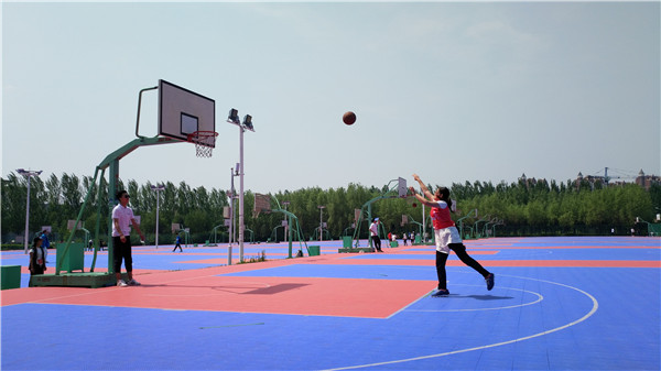 印象中的篮球场总是热闹非凡,男生们肆意地挥洒着青春的汗水,今天的篮球场却有些不同,到处都能看到跳跃晃动的马尾辫,真是一道独特的风景线。