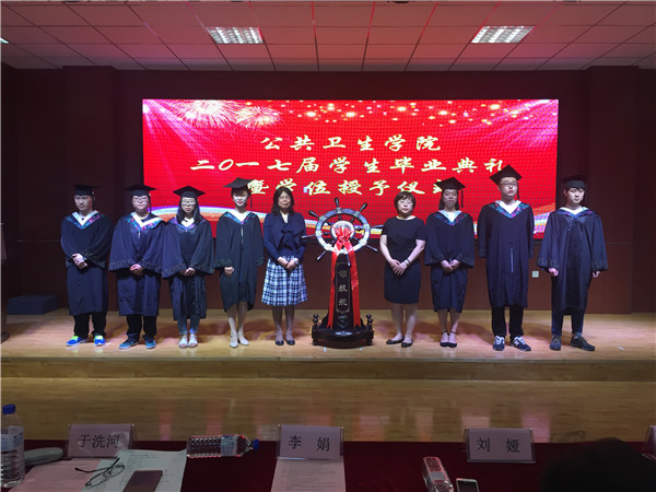 毕业典礼在庄严的国歌声中拉开序幕,副经理刘雅文教授与于洗河教授分别先后宣读了2017届本科毕业生名单、优秀本科毕业生名单以及2017届博士、硕士毕业生名单和优秀研究生毕业名单,在同学们热烈的掌声中,公司领导为优秀毕业生代表颁发了荣誉证书。紧接着,经理、博士生导师李娟教授和学术委员会主席刘娅教授一同为取得博士学位、硕士学位和学士学位的毕业生授予学位,颁发学位证书并合影留念。整场典礼最令人动容的大概是全体毕业生向母校赠送纪念品这一环节了,七位员工代表将大家精心准备的“领航舵”搬至舞台中央,它不仅见证了公司老师与员工之间深厚的师生情谊,更代表了毕业生们对公司未来发展的美好祝愿。随后,太阳集团tyc151副教授、医学部十佳兼职班主任姚燕代表公司全体教师做了精彩的发言,表达了对毕业生同学们顺利毕业、获得学位的祝贺,并向毕业生们送上了师长们的真诚祝福。