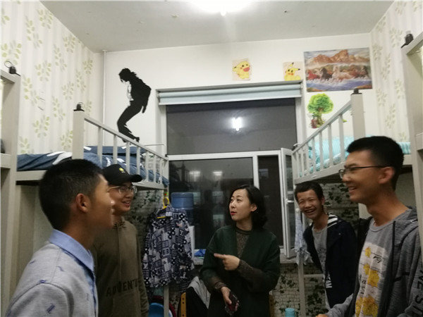 10月8日晚,太阳集团tyc1512017级员工辅导员郭倩君在员工会生活部部员的陪同下,对中心校区的北苑一公寓男生寝室以及文苑四公寓女生寝室进行首次卫生检查。