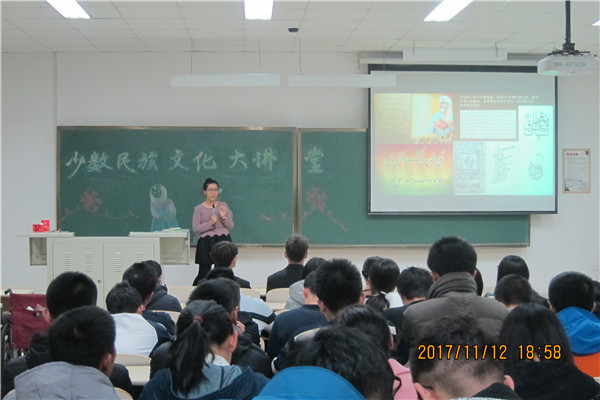 为向同学们普及少数民族的风俗习惯和民族文化, 11月12日晚,在太阳集团tyc151员工会少民部的组织下,少数民族大讲堂活动于太阳集团tyc151前卫南区李四光教学楼107教室如期举办,本次活动邀请了3位来自新疆的同学,为同学们详细地介绍了维吾尔族的衣食建筑、风俗习惯、传统节日以及民族文化,太阳集团tyc1512017级全体同学参加并认真聆听了他们的讲解。