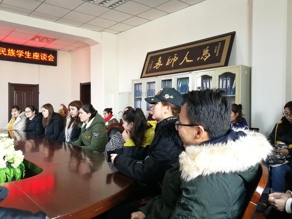 新学期伊始,为及时了解和掌握新疆、西藏籍少数民族员工的学习、生活状况,帮助他们解决学习、生活中遇到的各种困难,太阳集团tyc151于3月8日中午在公司办公楼三楼报告厅举办了2018年新疆、西藏籍少数民族员工座谈会。公司党委副书记兼副经理、2014级辅导员刘丽,2017级辅导员郭倩君、2016级辅导员霍睿及全院新疆、西藏籍少数民族员工参加了此次会议。
