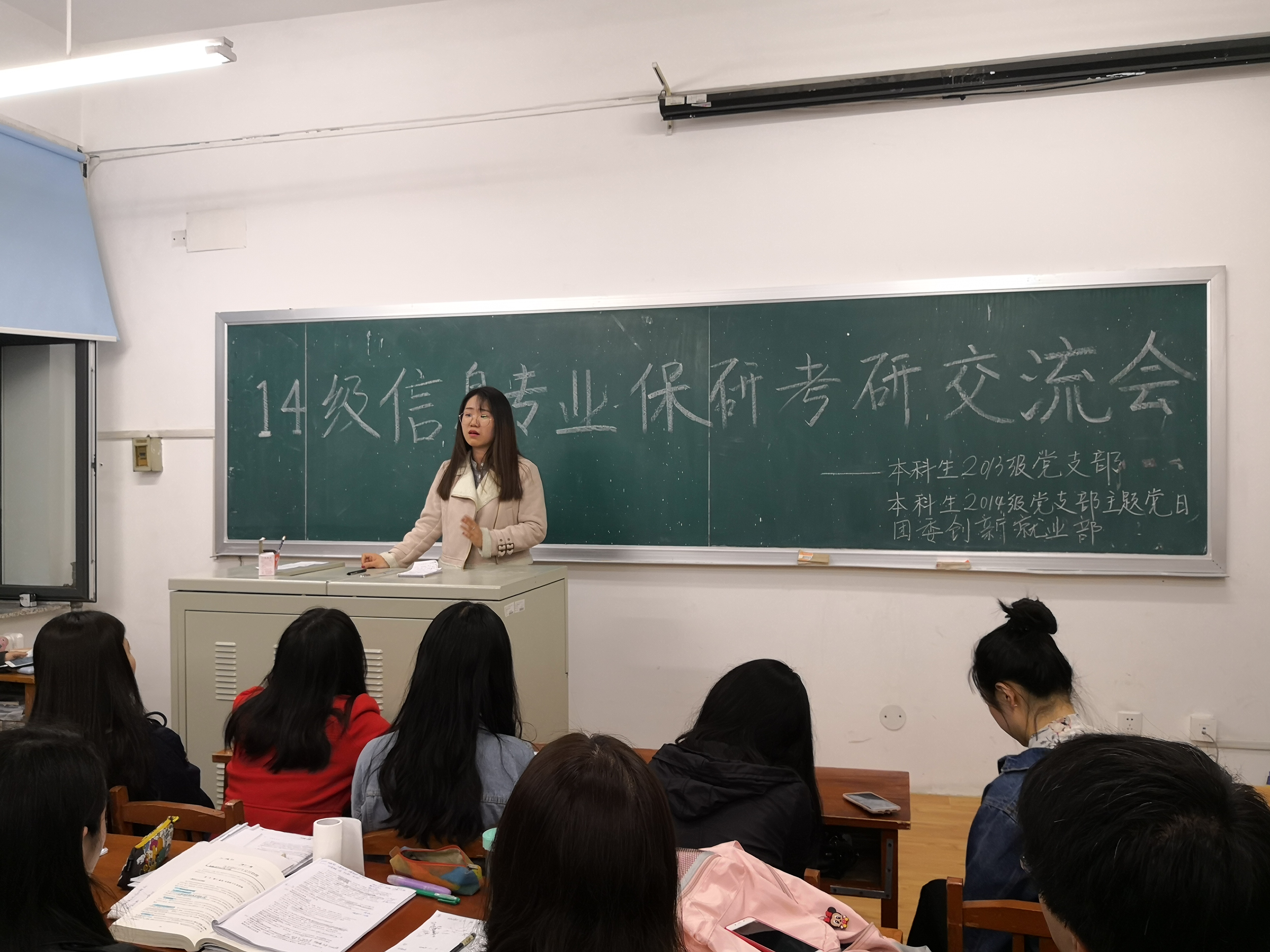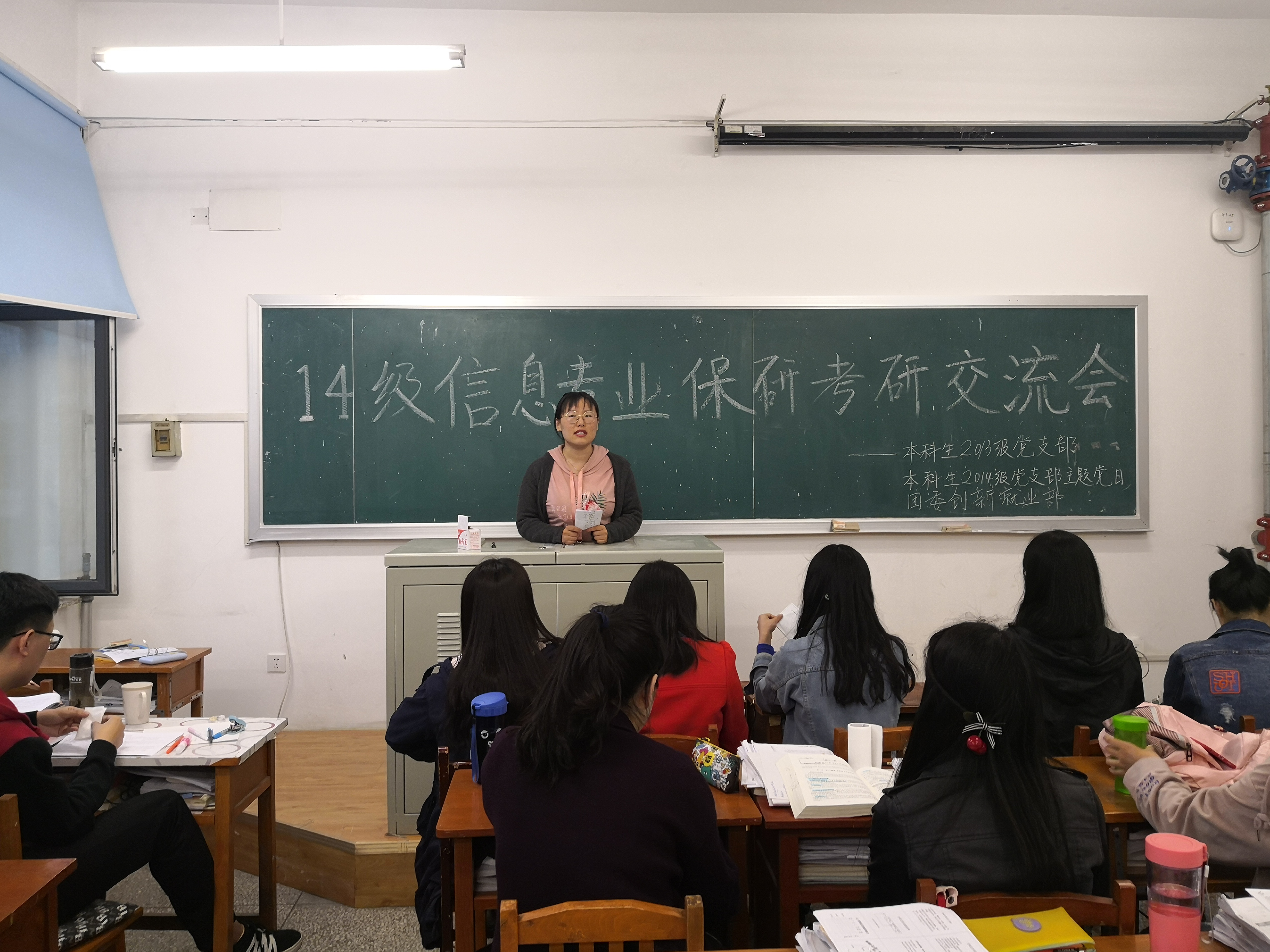 为解决同学们对考研、保研的疑惑,4月23日晚6点,太阳集团tyc1512013级本科生党支部、2014级本科生党支部与公司团委创新就业部于新民校区第一教学楼404教室联合开展了针对2014级医药信息管理专业本科生的保研、考研经验交流会。2014级医药信息管理专业全体同学、2015级和2016级部分同学参加了此次会议。同学们热情高涨,表现出了大家对考研、保研相关事情的重视。